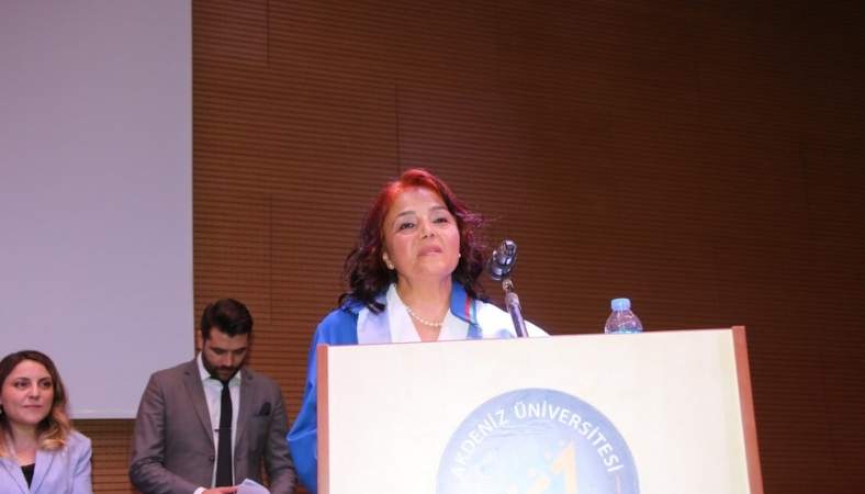Mezun olan öğrencilerin geçirdiği 4 yılın zorluklarla dolu olduğunu hatırlatan Dekan Prof. Dr. Necla Öztürk, “Bu dönem mezunlarını hem çok şanssız hem de şanslı görüyorum. Çünkü pandemi ile mücadele ettiler. Ardından deprem felaketini yaşadılar. Ancak 2023-2024 mezunları olarak fakültemizin düzenlediği Cumhuriyetin 100. yılı etkinliklerinde görev alma, etkinliklere katılma ve bu etkinliklerin sonunda duayen hocalarımızla tanışma imkanı, onlara soru sorma imkanı bulabildiler. O nedenle de çok şanslı buluyorum bu dönem öğrencilerimizi. Bizler de onlara bu olanağı sağlayabildiğimiz için çok mutluyuz.” şeklinde konuştu.