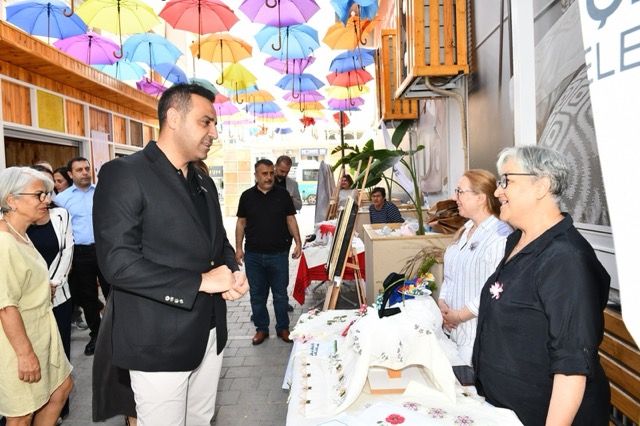 Başkan Yıldız, göreve geldikleri günden bu yana kadınların yaşamın her noktadasın da olması için çalıştıklarını kaydetti. Yıldız, “Bugün burada, emeğin, sabrın ve yaratıcılığın hayat bulduğu çok özel bir buluşmaya tanıklık ediyoruz. Kadınlarımızın el emeği, göz nuru ürünlerini sergilediğimiz bu güzel “Kadın El Emeği Sokağı”, aslında sadece bir sergi alanı değil; aynı zamanda dayanışmanın, üretimin ve kadın gücünün görünür hale geldiği bir semboldür. Göreve geldiğimiz ilk günden itibaren, kadınların hayatın her alanında hak ettiği yeri alması için var gücümüzle çalışıyoruz. Kadının olmadığı hiçbir kalkınma, gerçek bir kalkınma değildir. Ekonomide, kültürde, sanatta, sokakta, siyasette ve yaşamın her köşesinde kadınların güçlü varlığına ihtiyacımız var. Bugün burada sergilenen sadece bir tablo, bir çanta, bir sabun ya da bir takı değil; kadınların emeğini ekonomik değere dönüştürme yolundaki kararlı adımlarının birer kanıtıdır. Biz, Çiğli Belediyesi olarak kadınlarımızın hem sosyal hayata katılmalarını hem de ekonomik olarak güçlenmelerini sağlayacak her projeye destek vermeye devam edeceğiz” diye konuştu.