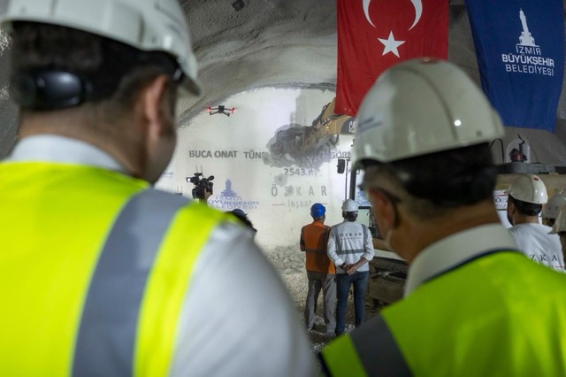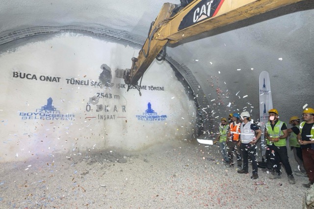 İzmir Büyükşehir Belediyesi’nin öz kaynaklarıyla yapımına devam ettiği ve tamamlandığında Türkiye’nin belediye kaynaklarıyla yapılan en uzun karayolu tüneli olacak Buca Onat Tüneli’nde ilk ışık göründü. Buca ile Bornova’yı birbirine bağlayarak kent trafiğine nefes aldıracak tarihi yatırımın 2,5 kilometrelik tünel etabında sağ tüpteki kazı çalışmaları tamamlandı. Son duvar, İzmir Büyükşehir Belediye Başkanı Dr. Cemil Tugay’ın katıldığı törenle yıkıldı. Buca Onat Caddesi girişinde tünel kazısının yürütüldüğü alana gelen Başkan Tugay, ekskavatöre binerek Buca Onat Caddesi ile Altındağ girişlerini birbirine bağlayan son duvarı kırdı. Yıkılan duvarın ardından Başkan Tugay’ı, 7 gün 24 saat esasıyla projenin yapımı için çalışan emekçiler Türk bayrağıyla karşıladı. Törene Başkan Dr. Cemil Tugay’ın yanı sıra İzmir Büyükşehir Belediye Meclisi CHP Grup Başkan Vekili Altan İnanç ve İzmir Büyükşehir Belediyesi bürokratları katıldı. İzmir Büyükşehir Belediyesi Genel Sekreter Yardımcısı Çağatay Güç, projenin durumu hakkında Başkan Tugay’a bilgi verdi.